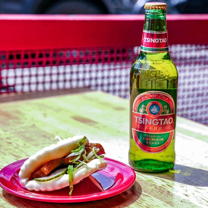 Taiwanese folded bun with Braised pork belly, cucumber, hoisin sauce.